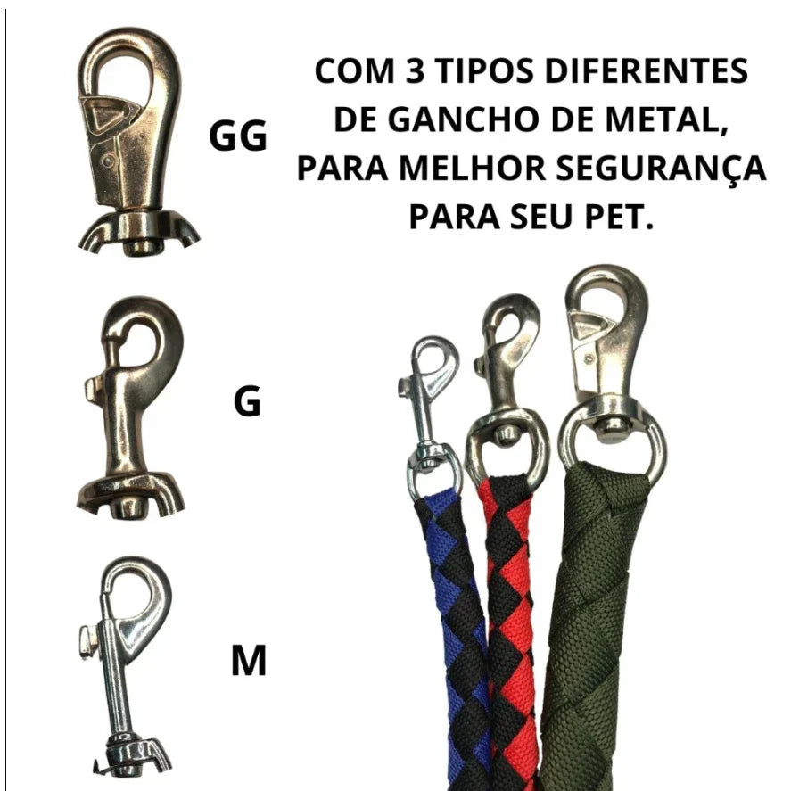 - Gancho de Metal Ultra Seguro: Equipado com um gancho que fixa firmemente a guia, evitando que o seu pet escape.